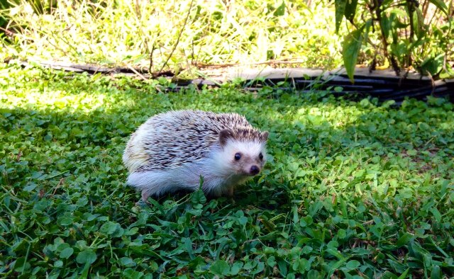 I was enjoying a gorgeous summer-autumn transition day out in my backyard today; the weather was so perfect that I brought my hedgehog out for a frolic in the garden. It occurred to me, as I snapped a photo of Clover enjoying this natural environment, that most people might find this scene a little absurd. When people ask if I have a pet, they are awaiting stories of a dog or a cat. While felines and canines are delightful species, I have always had a special place in my heart for this prickly-yet-adorable insectivore, the hedgehog.