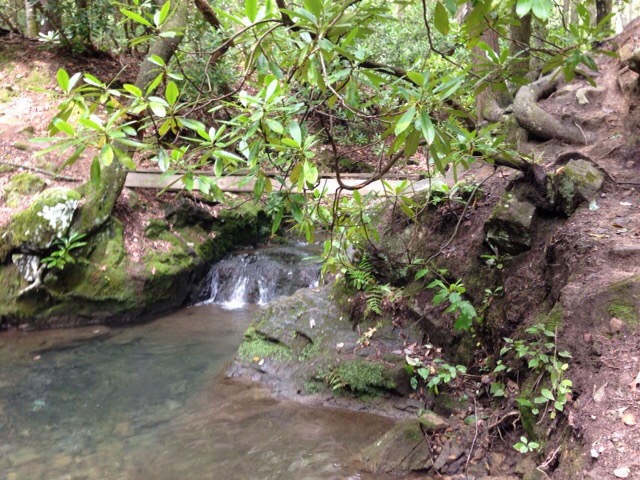 Whenever I hike during the summer in Virginia, I am painfully aware that I grew up in upstate New York. I had nearly downed my water bottle half-way into today’s hike, and that barely made up for what my body was sweating off. The hike today was a staff bonding experience to Seven Springs, a beautiful deep woods location that involved “some” downhill trekking and mild maneuvering over rocks and crossing a stream via a 2×4 bridge. I was reassured I would be fine. Admittedly, I was less than convinced.