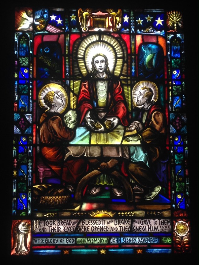 The disciples eventually do arrive home, and when they do, they invite the stranger to remain with them. That stranger of the road…who we know to be Jesus…accepts that invitation. He takes bread, blesses it, breaks it, and gives it to the disciples who have welcomed him to the table. Jesus transforms a simple meal of hospitality into divine communion. And this is when his disciples truly come home. They recognize him: they know him in the breaking of the bread. That recognition revives and transforms them, even when the risen Christ disappears from their midst. They are not alone; they know they have been in the presence of the Holy One. Back on the road…seven miles later…they are reunited again with Jesus’ other disciples, sharing the good news and giving thanks. Maybe the journey home doesn’t always lead to where we think it will.