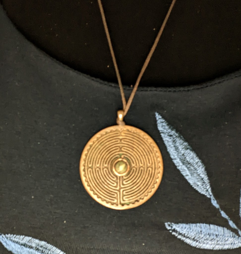 I’m wearing a pendant today that was a gift from a doctoral advisee named Lisa. Lisa worked as a social worker for military families and understood from all her training and experience how war and trauma were interconnected in ways that shaped everything about her life, her family and all of those around her. Through her, I came to understand the impacts of war on soldiers, on families, on communities in ways that transformed the depth of my experience. My intellectual knowledge of war evolved to an empathic understanding of the magnitude of the effects of war on our humanity. We spoke often about spirituality as a grounding force in the midst of so much pain. When Lisa graduated, she gave me this pendant, a labyrinth, something that held special significance in my spiritual life. It was a very symbolic gift.